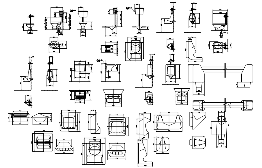 Sanitary layout in dwg file it includes plan,side elevation,front view it also includes basin detail,toilet detail,etc