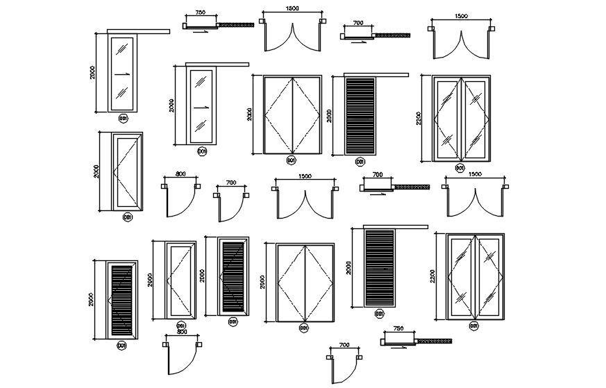 Dwg file of doors detail it include elevation,plan of door and windows it also includes a front view of doors with a different design,etc