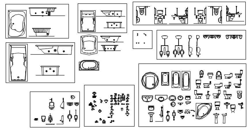 Dwg file of bathroom fixtures blocks it includes top view,side view,front view it also includes bathtub, urinals,bidets, basin,etc