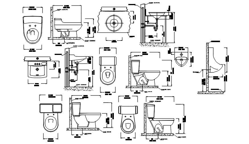 Dwg file of bathroom fixtures blocks it includes top view,side view,front view it also includes bathtub, urinals,bidets, basin,etc