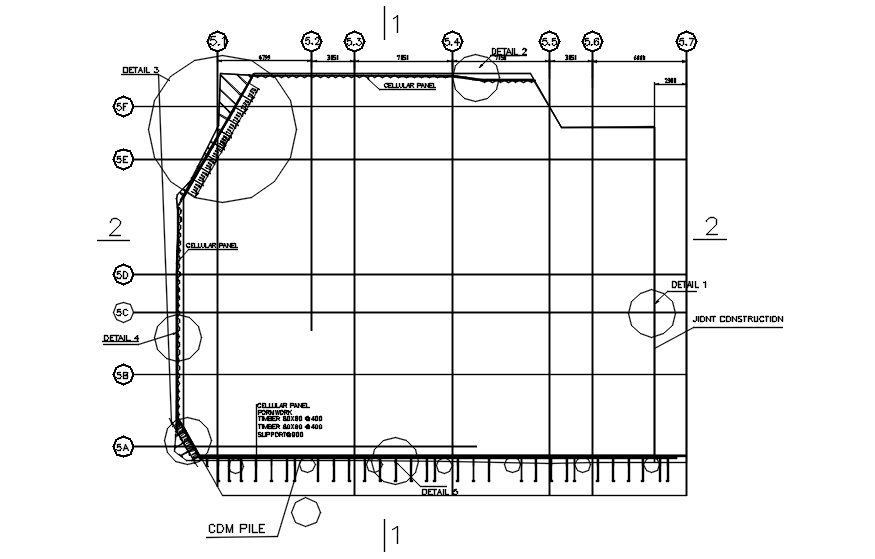 Dwg file of construction detail it includes cellular panel framework, joint construction,CDM pile,etc