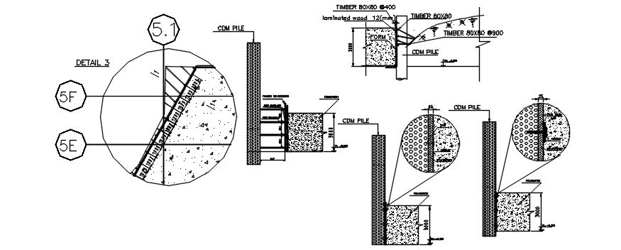 Construction detail of foundation in AutoCAD it includes CDM pile detail, foundation detail, staircase detail,wooden detail,etc