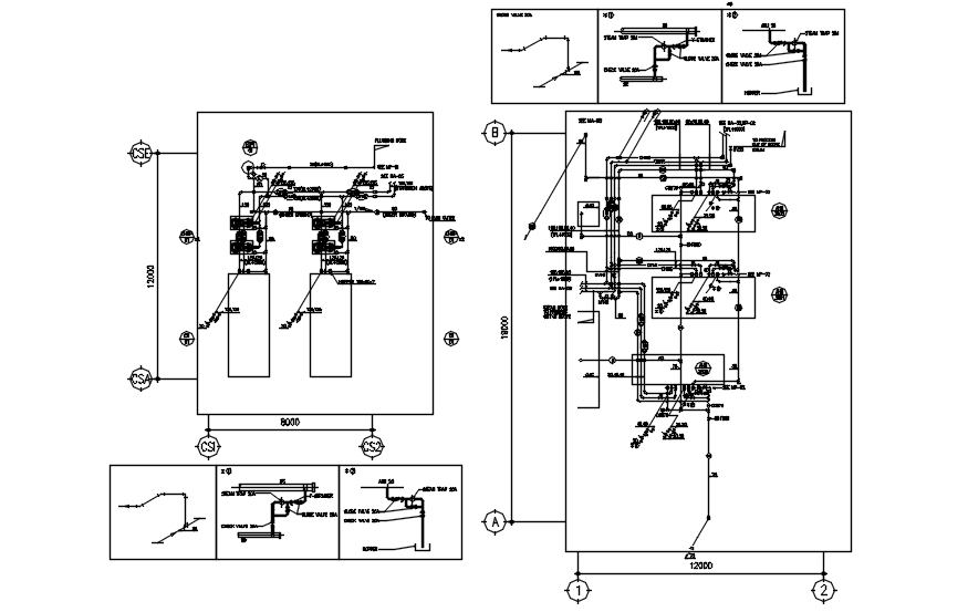 Construction detail of A.C in dwg file it includes piping detail, ducting layout, chiller space detail,etc