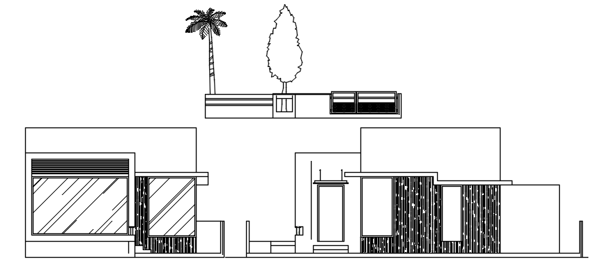 Sectional elevation of the bungalow in dwg file it includes front facade, rear elevation, compound wall design it also includes floor level, exterior view,doors,windows,rooftop,etc