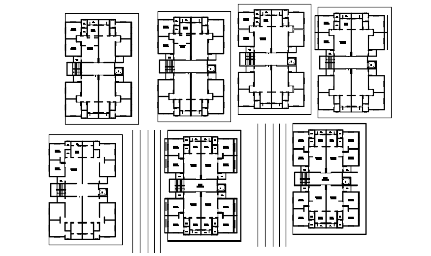 Dwg file of residential apartment layout it include ground floor layout, first-floor layout, second-floor layout, terrace layout it also includes kitchen, drawing room,dining room,bedrooms,toilets,bathroom,etc