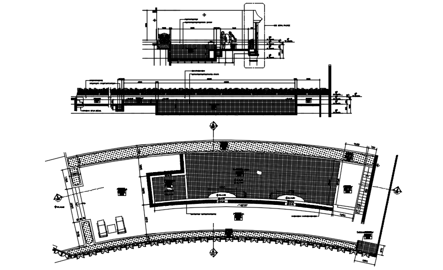 Construction detail of swimming pool it includes a section of pool,pool level,roof level it also includes plan,section,etc