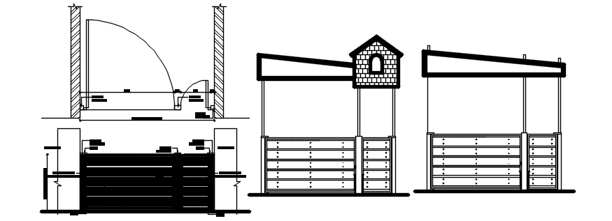 Main gate detail in dwg file it includes plan,elevation,detail it also includes the main gate, wooden board,etc