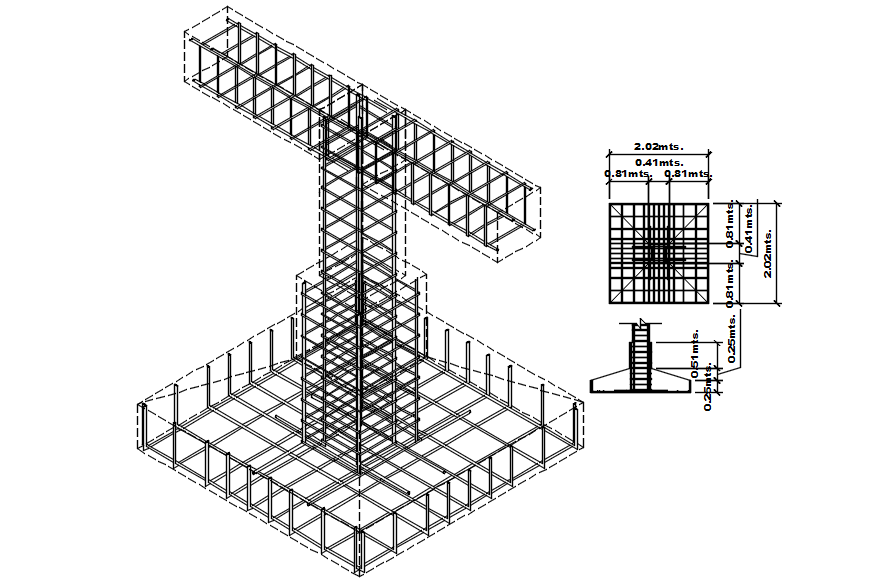 Construction detail in dwg file it includes footing detail, isometric view it also includes plan,section,elevation,etc