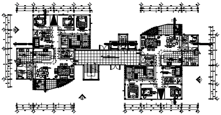 Dwg file of residential flat with detail dimension which provides detail of hall, drawing room, bedroom, kitchen, dining room, bathroom, toilet, etc.