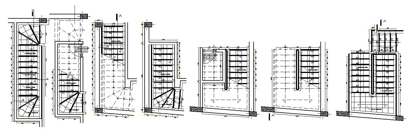 Autocad drawing of the staircase it includes a plan of stair it also includes different types of stair plans, staircase, railing, baluster, riser,etc