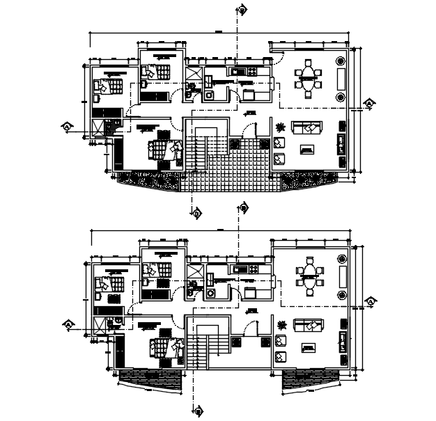 Plan of house design with furniture details in autocad which provide detail of drawing room, bedroom, kitchen, dining room, bathroom, toilet, etc.