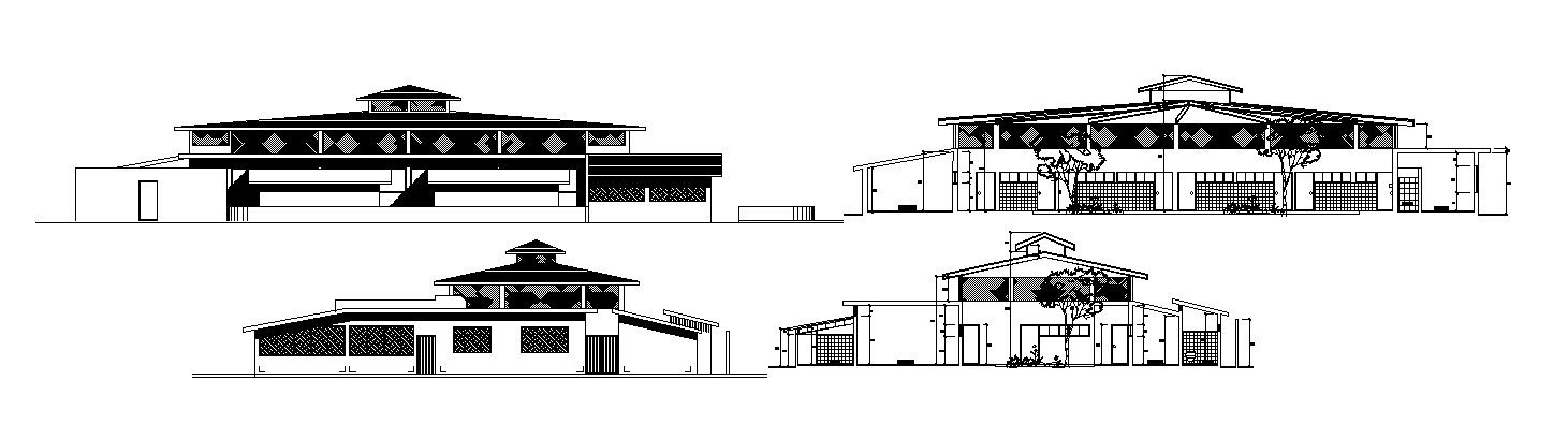 Autocad drawing of sectional elevations it include front facade,rear elevations,side elevation it also incude floor level,rooftop,truss,staircase,etc