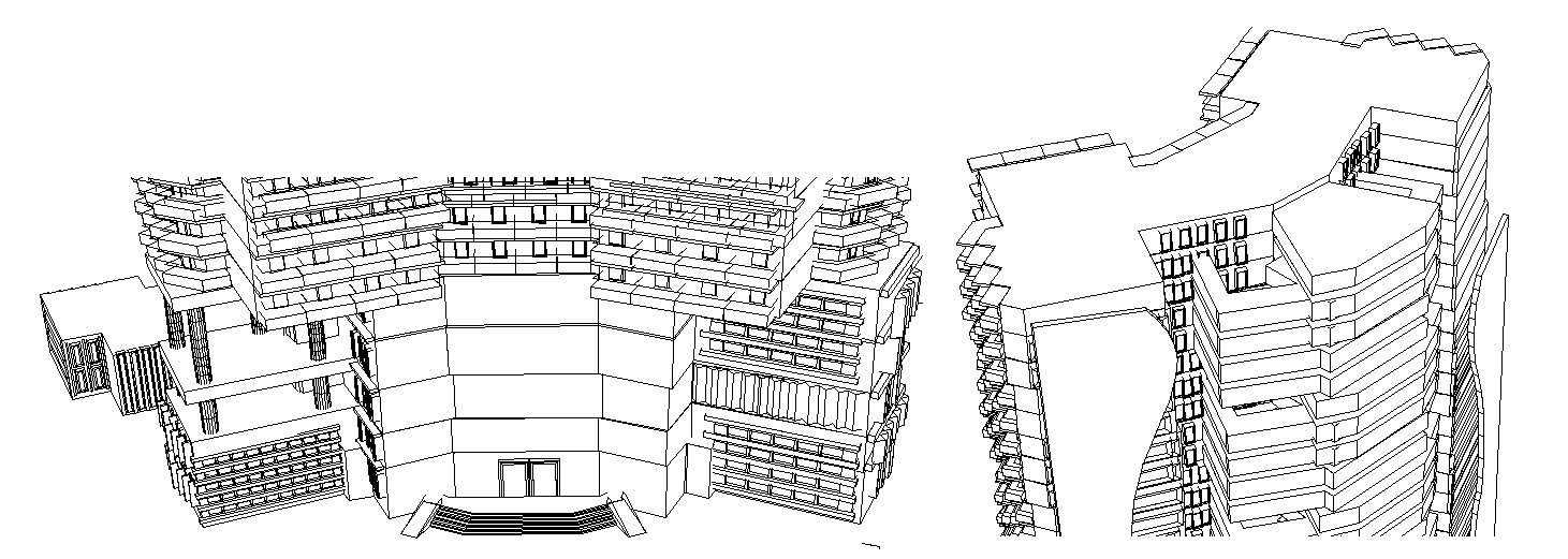Perspective view of the hotel in dwg file