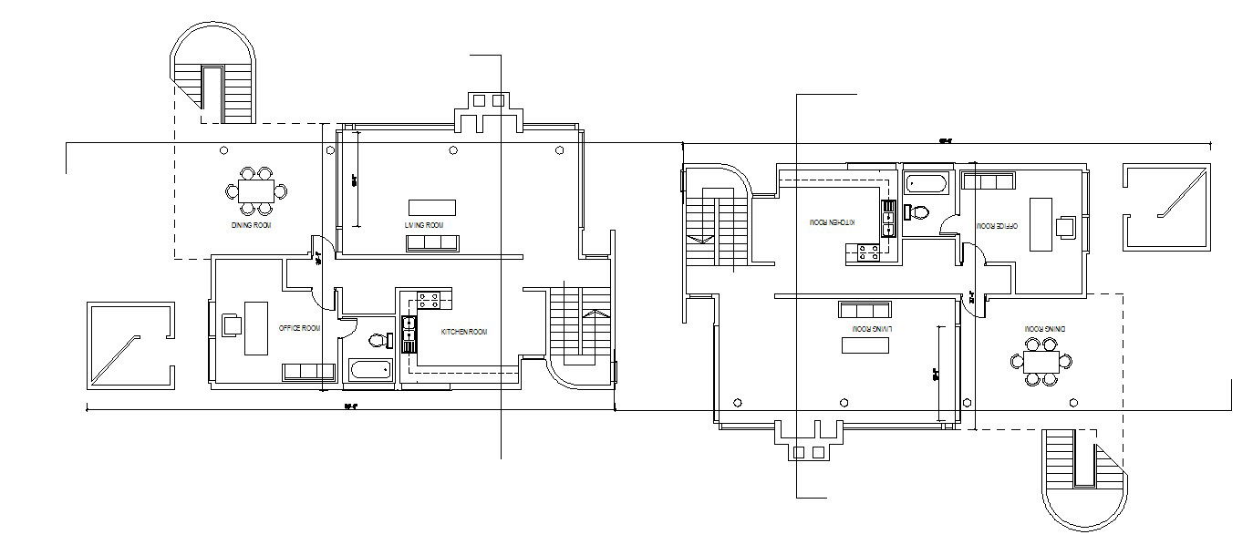 Modern House Layout In DWG File it includes ground floor layout, first-floor layout it also includes kitchen, dining area, living area, bedrooms, kids bedroom, parking area.