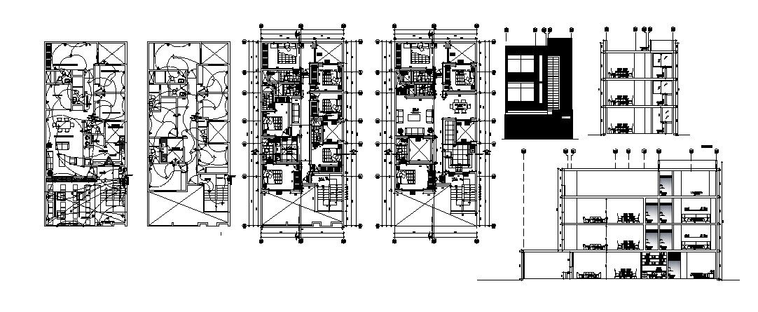 Three Storey Building Design In AutoCAD File which provides detail of sections, staircase plan.