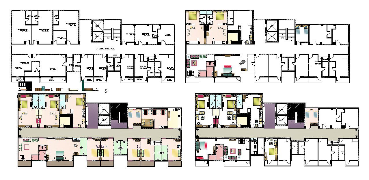 Luxury Apartment Design In AutoCAD File it includes ground floor layout, first-floor layout, terrace layout it also includes kitchen, drawing room, dining room, bedrooms, toilets, bathroom, parking area.