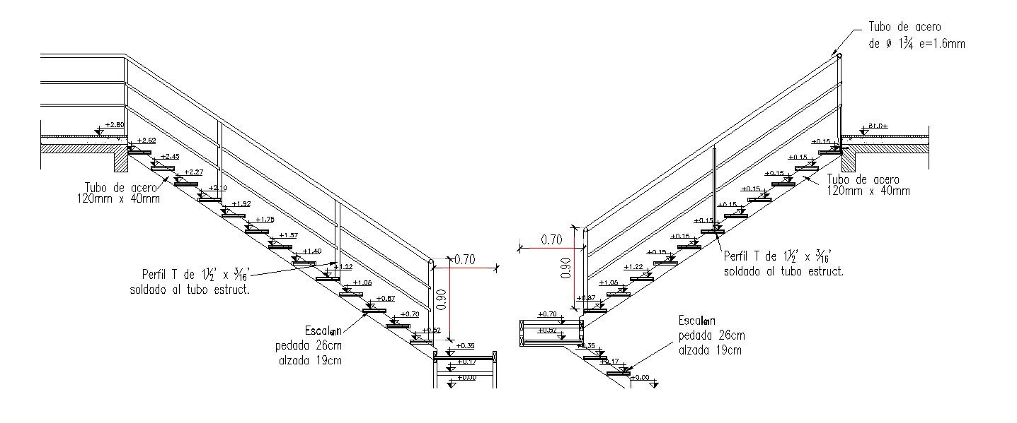 Elevation of the staircase in dwg file it includes sections of staircase,railing,baluster,riser and steps,etc
