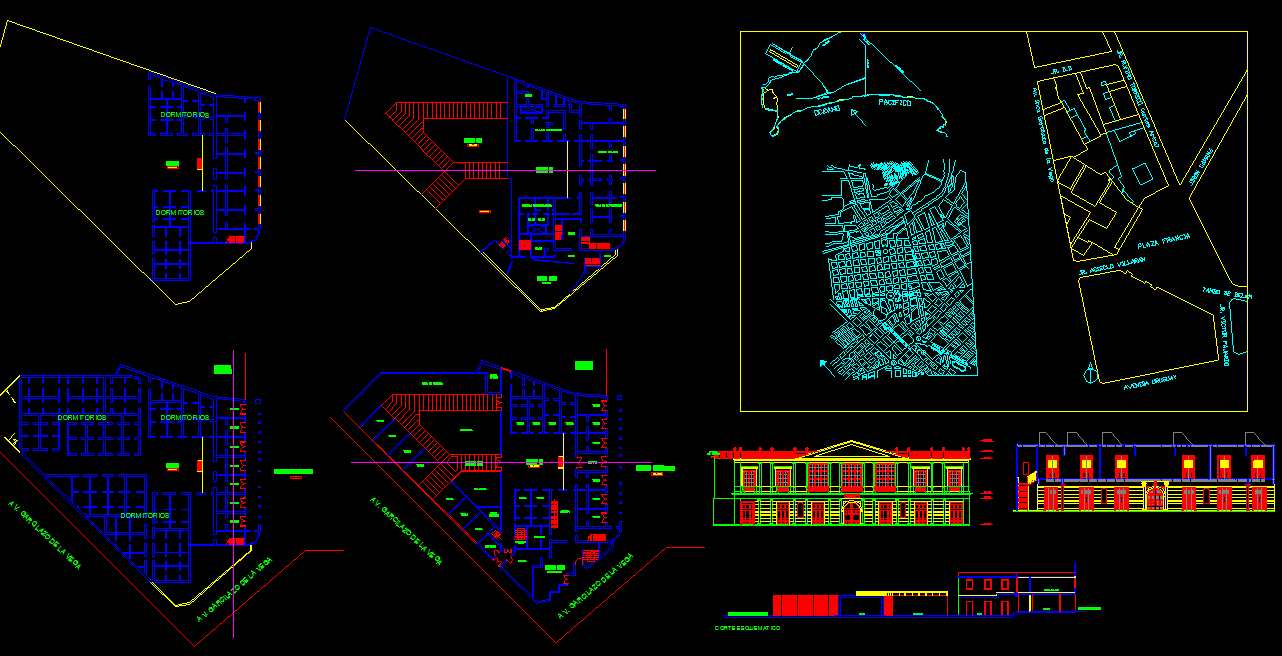 This hospital building architectural structural CAD DWG includes layout, elevation, and section details useful for professional architects and design engineers.