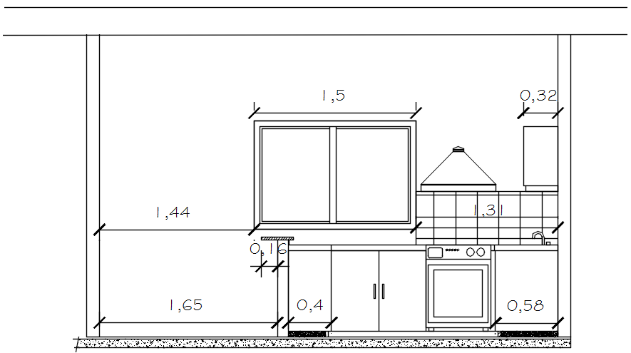 Sectional elevation of the kitchen in autocad