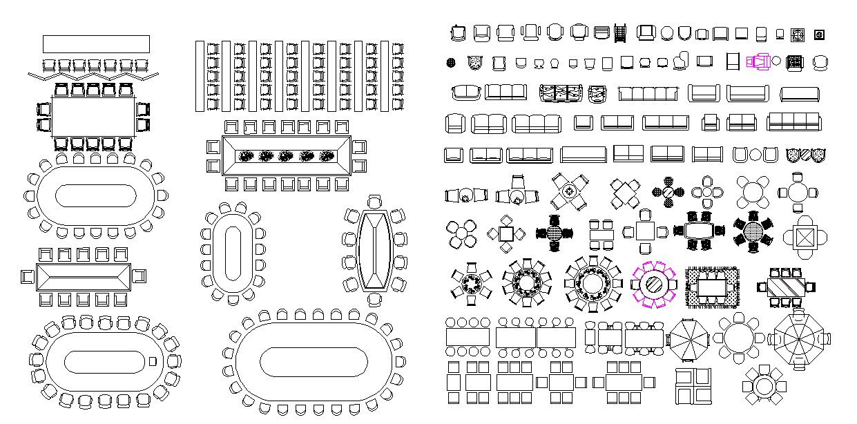 Autocad block of multiple furnitures it includes dining table block,sofa block,top view of it