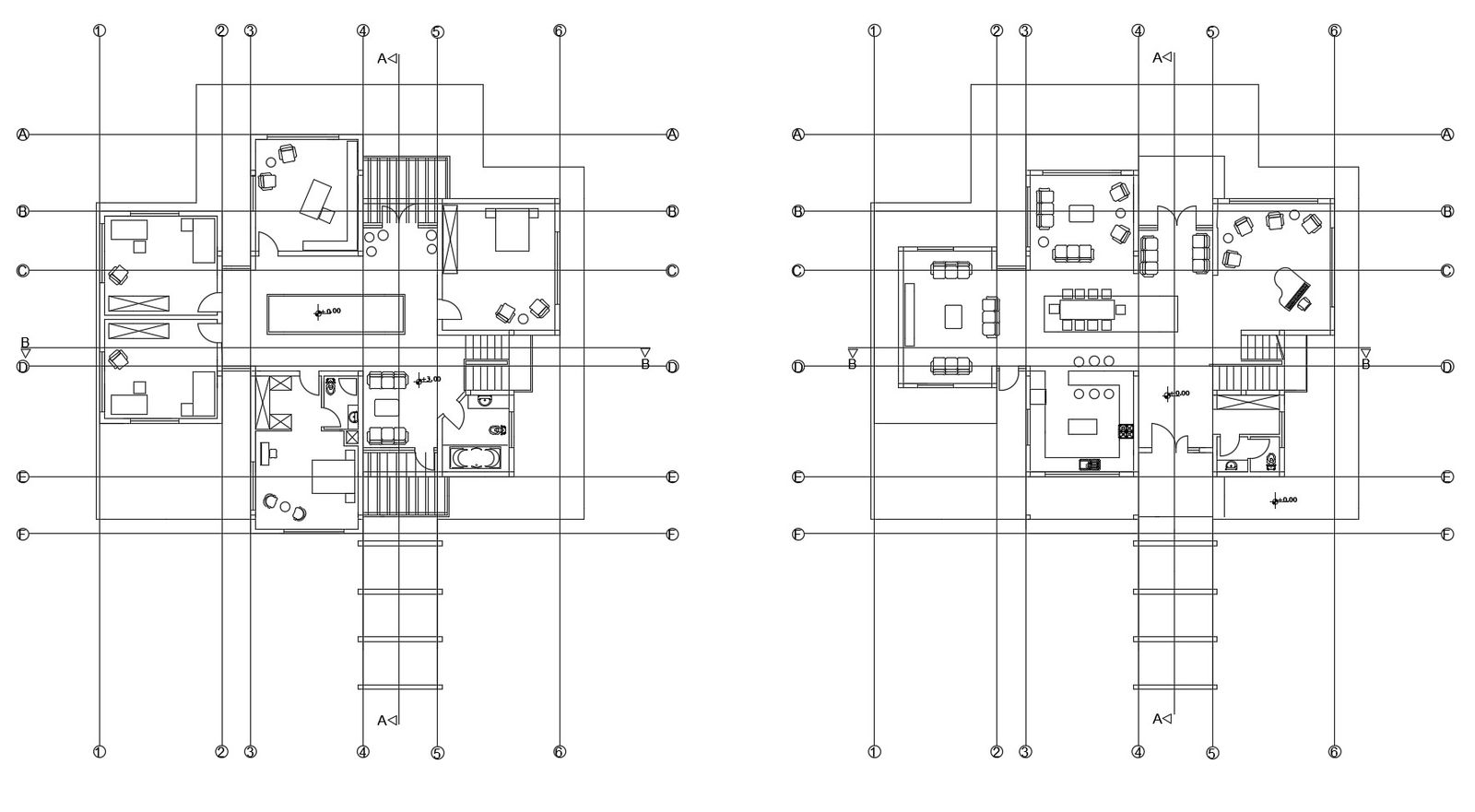 Plan of house with furniture details in dwg file