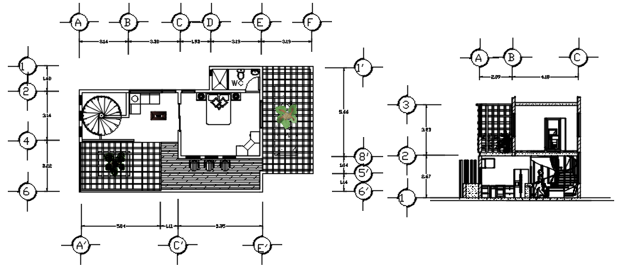 Autocad drawing of residential bungalow layout it include floor layout, sections it also includes floor layout, floor level, kitchen, drawing room,dining room, bedrooms, toilets, bathroom, parking area,etc