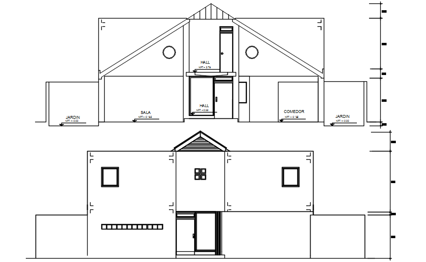 Autocad drawing of sectional elevation of bungalow
