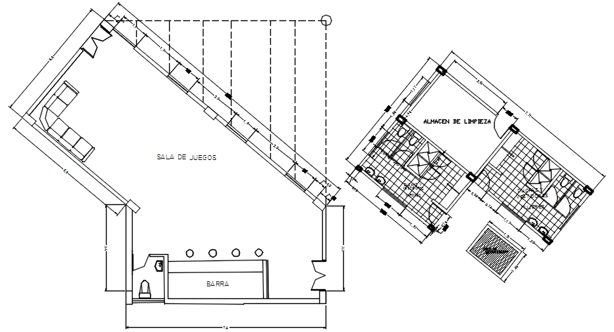 Enlarge plan of the reception area of the hotel it includes furniture layout, floor layout it also includes a table, sofa, toilet layout,etc