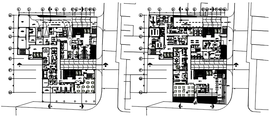 Hospital layout in dwg file it include ground floor layout, first-floor layout, it also includes waiting area,reception area,emergency room,rooms,doctors cabin,etc