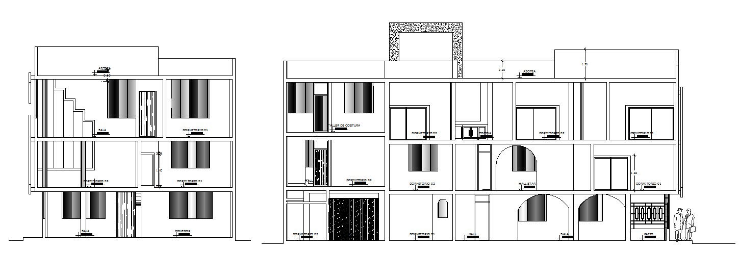 Sectional elevation of the hospital in Autocad it includes sectional elevation, front facade it also includes floor level, rooms,etc