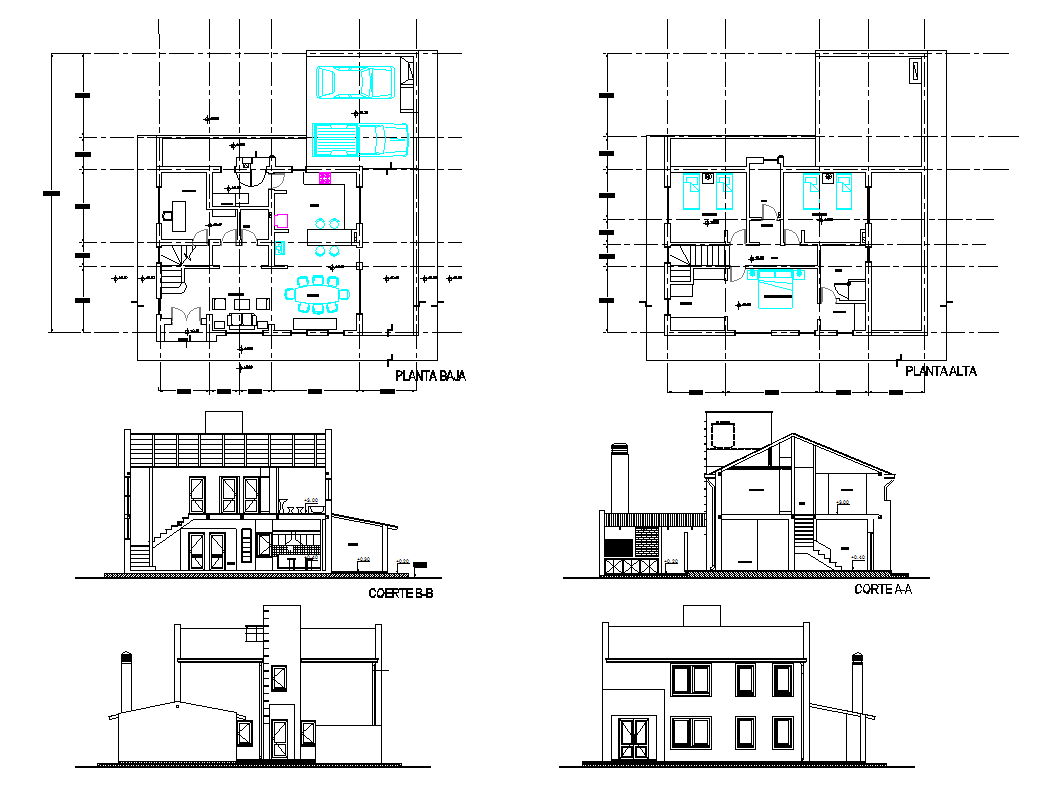 The architecture layout plan of all floor with all dimension, section plan and elevation design of house. Multi Family House design DWG file, Multi Family House Design.