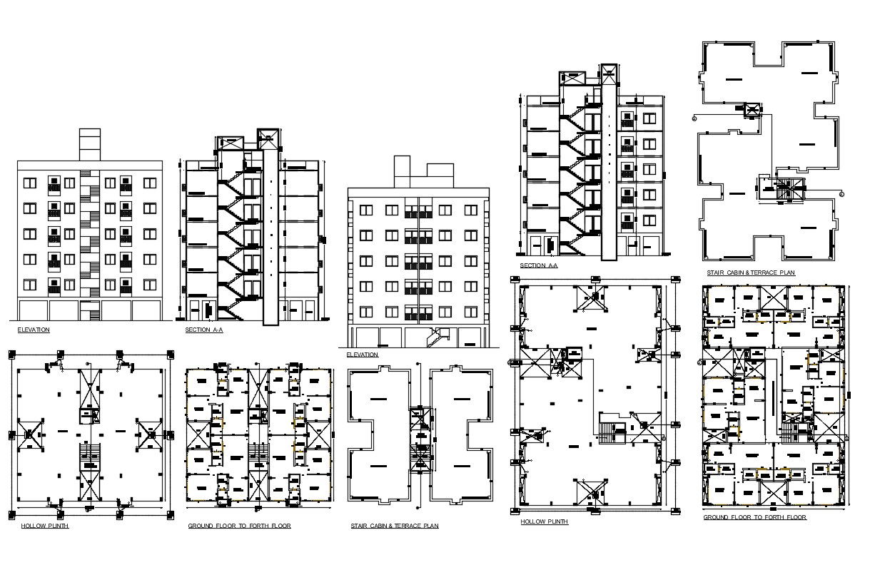 Residential apartment in autocad it include ground floor layout,first floor layout,terrace layout,sectional elevation it also include kitchen,drawing room,dinning room,bedrooms,toilets,bathroom,parking area,etc