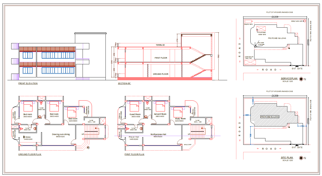 Residential house with plan,elevations,sections etc.Family House plan Detail file, Family House plan Download dwg File.