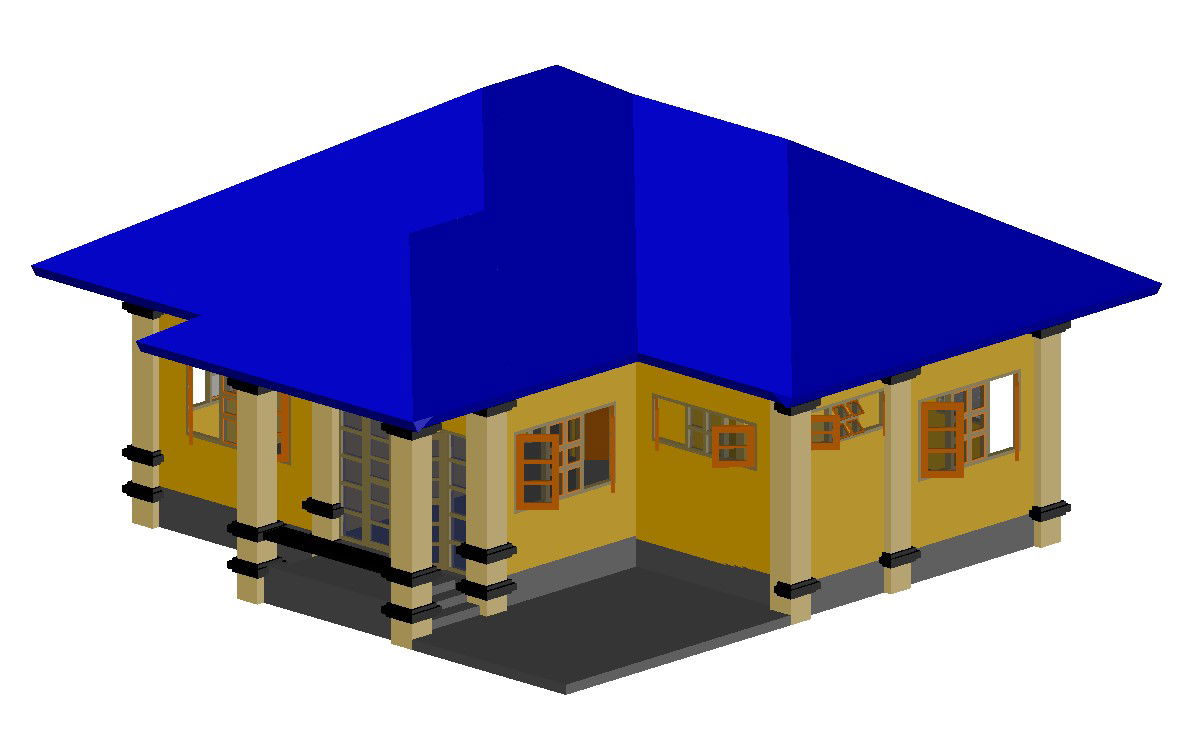 3d design of the house in autocad which provide detail of the outer design of the house, detail of doors and windows, etc.