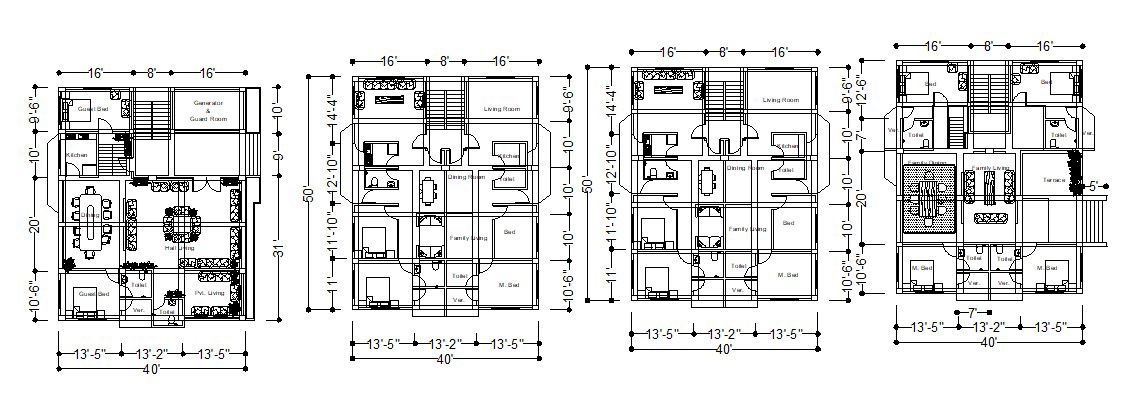 Drawing of house design with furniture details in dwg file which provide detail of drawing room, bedroom, kitchen, dining room, bathroom, toilet, etc.