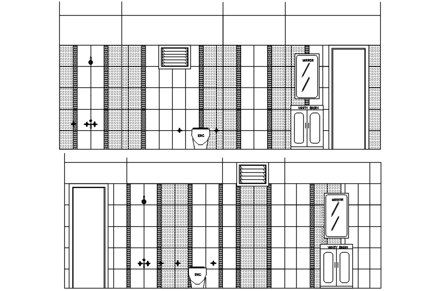 Bathroom Plans With Dimensions In DWG File which includes detail of section of the bathroom, detail of washbasin, detail of wc.