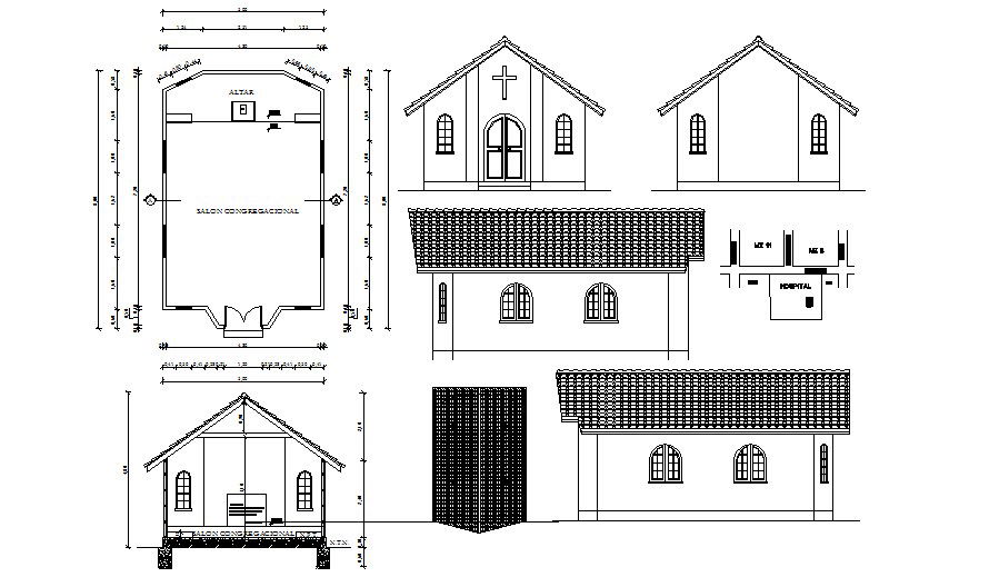 Hospital Plan Elevation Section In AutoCAD File which provides detail of south elevation, north elevation, different section, detail of location plan, terrace plan.