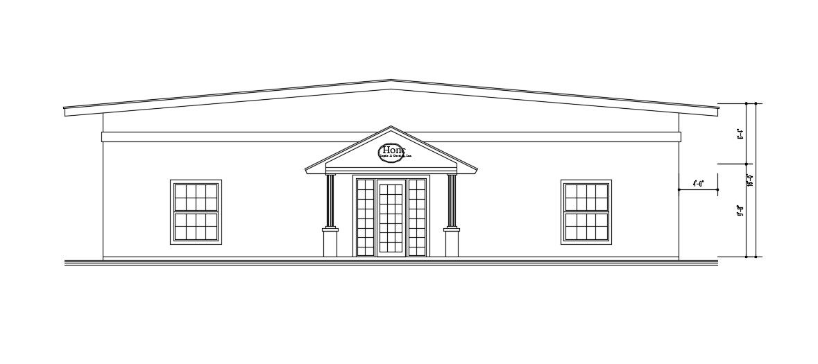 Bungalow Front Elevation In DWG File which provides detail of floor level, detail of front elevation, detail of entrance.