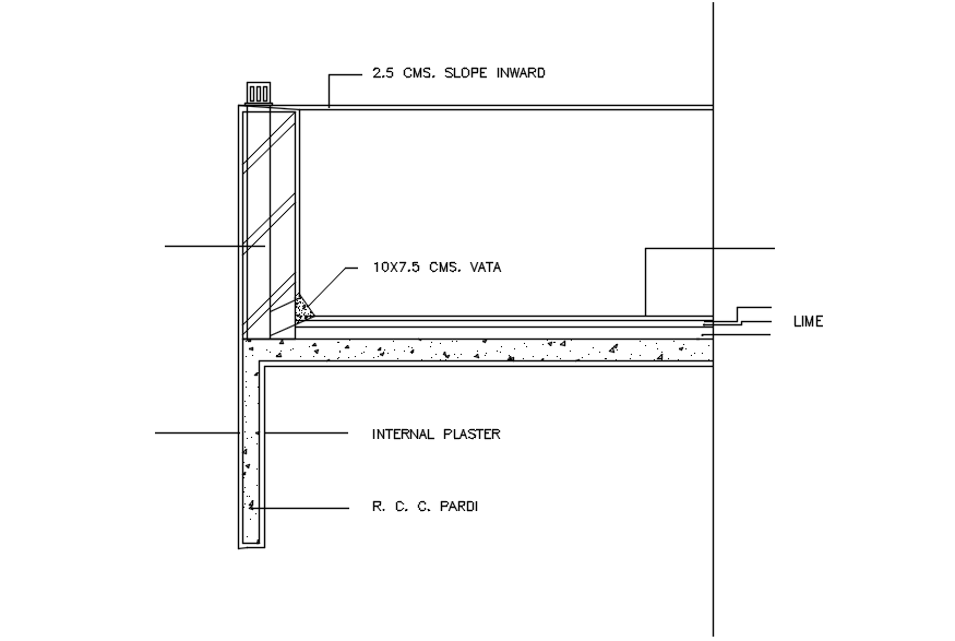 Wall Plaster Design In AutoCAD File which includes detail of internal plaster, R.C.C Pardi, slope inward, lime.