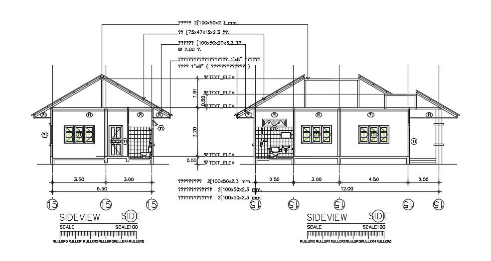 House Drawing In DWG File which provides detail of side view, detail of door and windows, section detail of the house, section detail of bathroom.