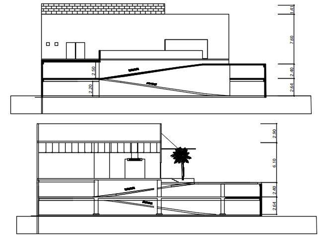 Restaurant Drawing In DWG File which provides detail of sectional drawing of house, detail of floor level.
