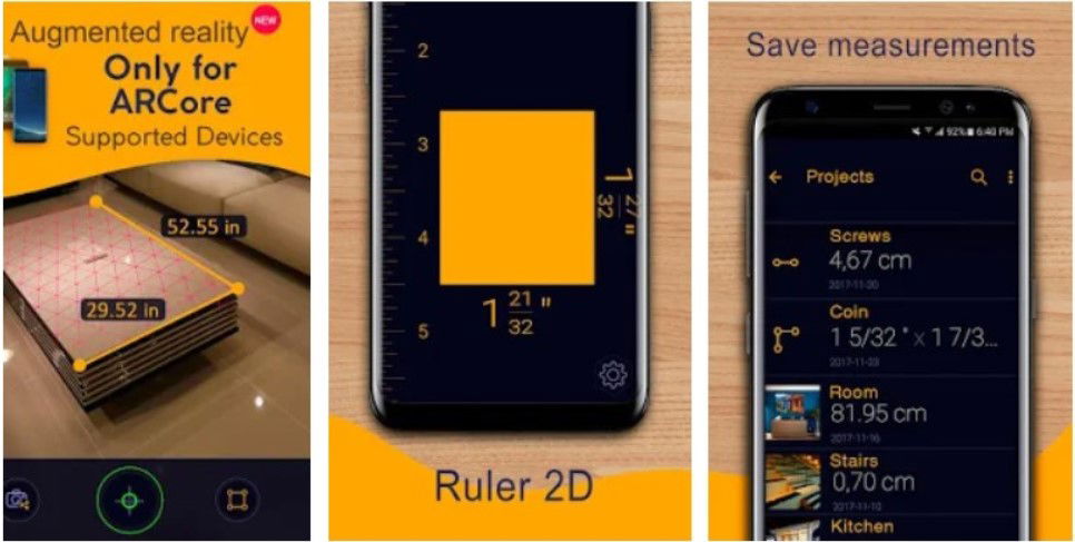 AR Core Ruler, Camera Tape Measure App is a Powerful tape measure tool. It takes advantage of the use of Augmented Reality. Target aim on the detected plane and start to use ar tape measure tool. Line option allows to tape measure linear sizes in cm, m, ft, yd, apply mm ruler or inch ruler. And Distance meter option allows to tape measure distance from the device camera to a fixed point on the detected 3D plane. The angle option allows to tape measure corners on 3D planes. Volume button allows to tape measure the size of 3D objects. Path option allows calculating the length of the path. The height option allows to tape measure height relative to the recognized surface. This app is designed to accurately tape measure the size of any object by either taking a picture of it or measuring it on the screen. It allows you to measure things just as conveniently and precisely as with a traditional mm ruler or tape measure tool. This app is useful for civil engineers, Architects, and Interior designers. You can download the free APK file of this mobile app here. Download Now.