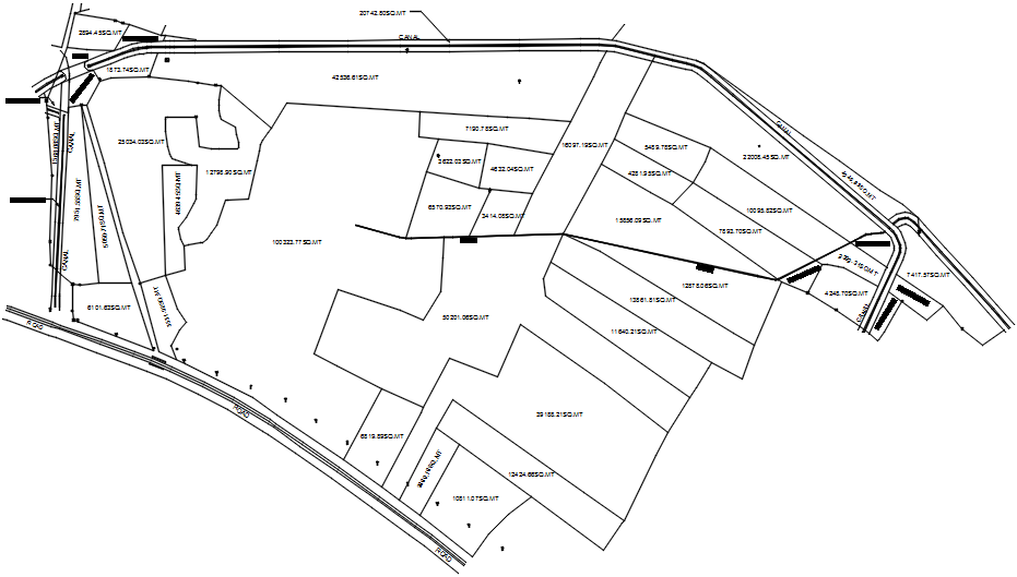 Plot Survey In DWG File which provides detail of wide road, detail of site plan, detail of the different building.