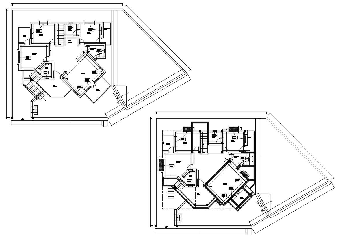 Modern Bungalow Floor Plan In DWG File which includes detail of drawing room, bedroom, kitchen, dining room, bathroom.
