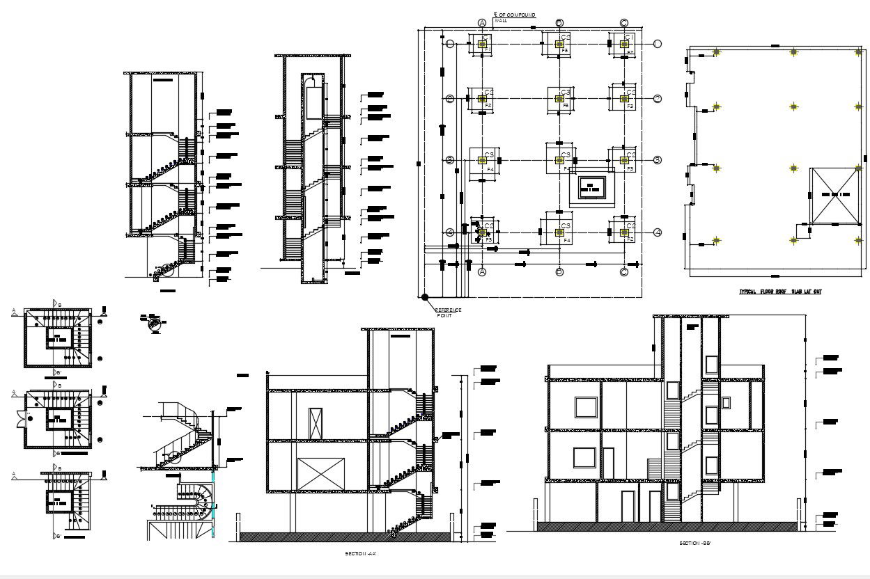 Residential Apartment Design In AutoCAD File which provides detail of the different section, detail of floor level, detail of foundation structure, ground floor plan, first-floor plan, stilt floor plan, footing.