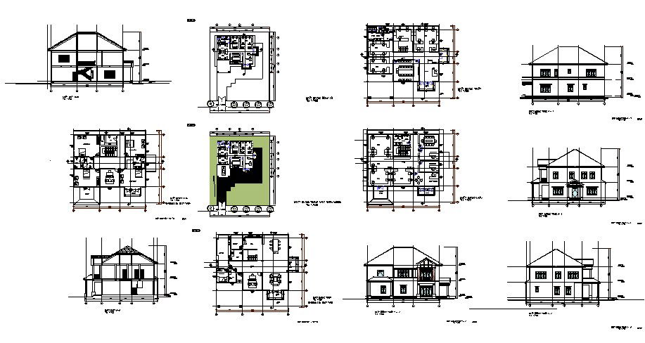 Architecture Villa Design In DWG File which provides detail of front elevation, side elevation, different section, detail of floor level, detail dimension of hall, bedroom, kitchen, dining room, office area, meeting room, WC and bath, etc it also gives full detail of furniture.