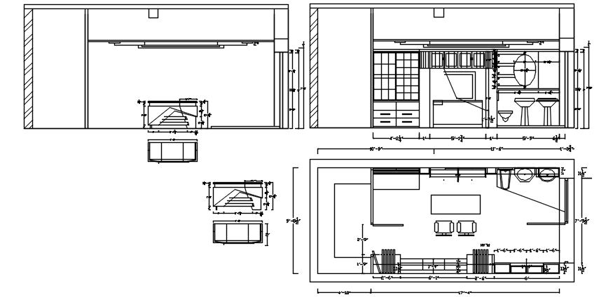Furniture Section Drawing AutoCAD Drawings which includes full detail of furniture, detail of floor area, detail of wash basin.