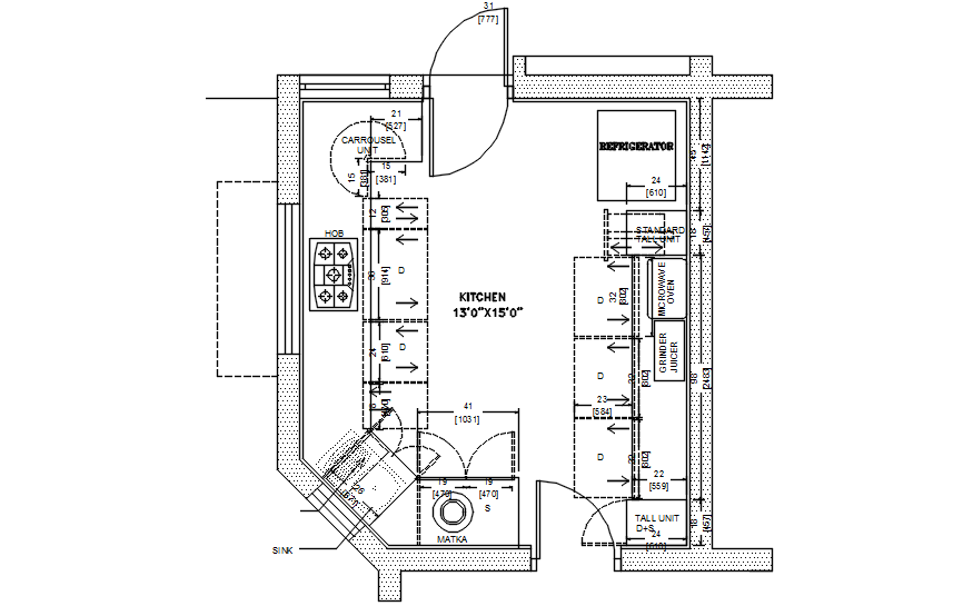 Download Free Kitchen Plan In AutoCAD File It includes detail of floor area, detail of the kitchen platform.