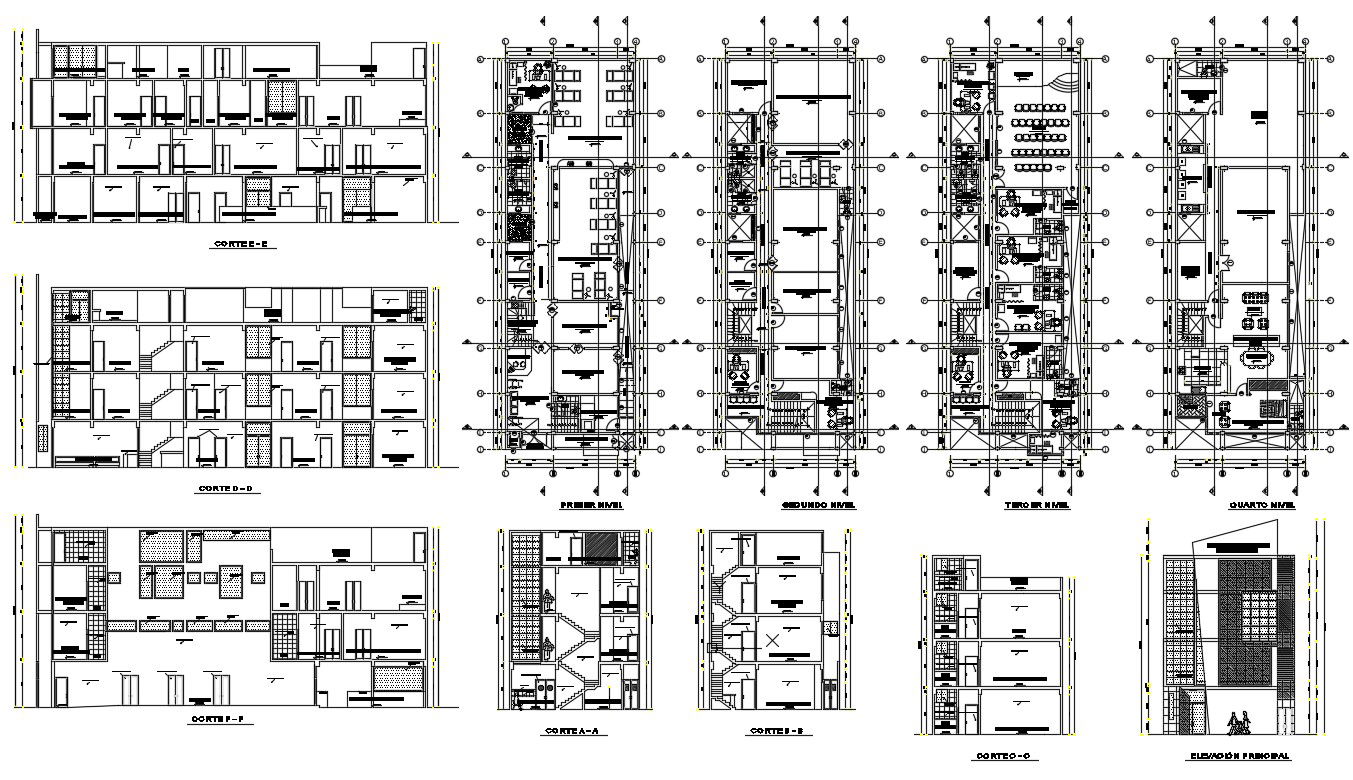 Clinic plan with dimension detail in dwg file which provides detail of front elevation, side elevation, section plan, dimension detail of all drawings like reception area, passage, consultant room, rooms, and bath, etc it also gives detail of location plan.