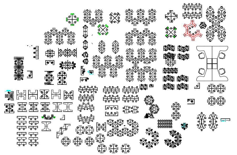2d cad drawing of the table and chair furniture blocks; find here different design of table and chair; download cad file and use for furniture presentation.